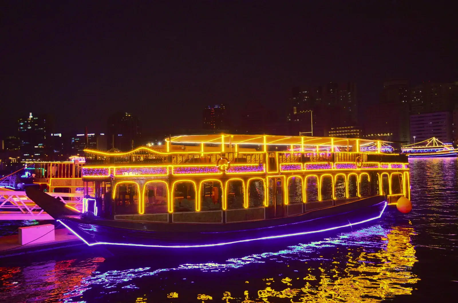Experience a magical dhow cruise with stunning city views and traditional Arabian ambiance